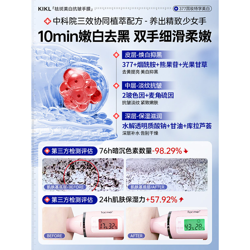 377手膜嫩白保湿美白手套补水手部修护干裂粗糙淡化手纹官方正品