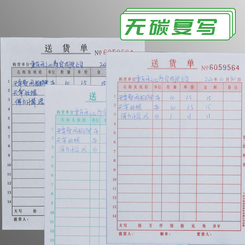 天章送货单36k竖版三联销货清单二联票据发货单出货单二联单无碳复写发货清单复写本横式3联送货单财会用品