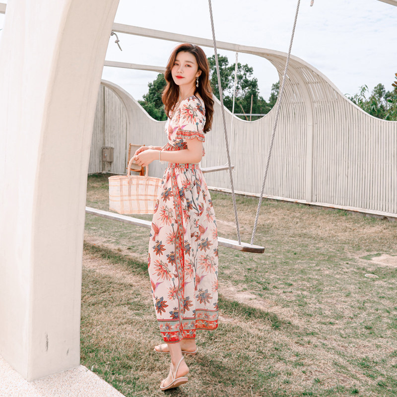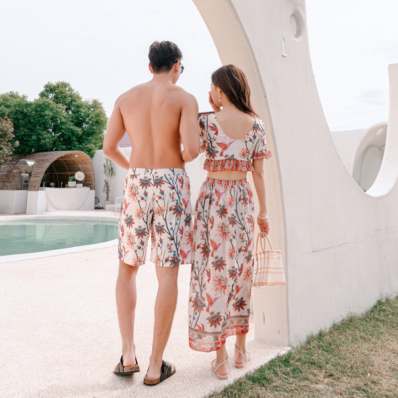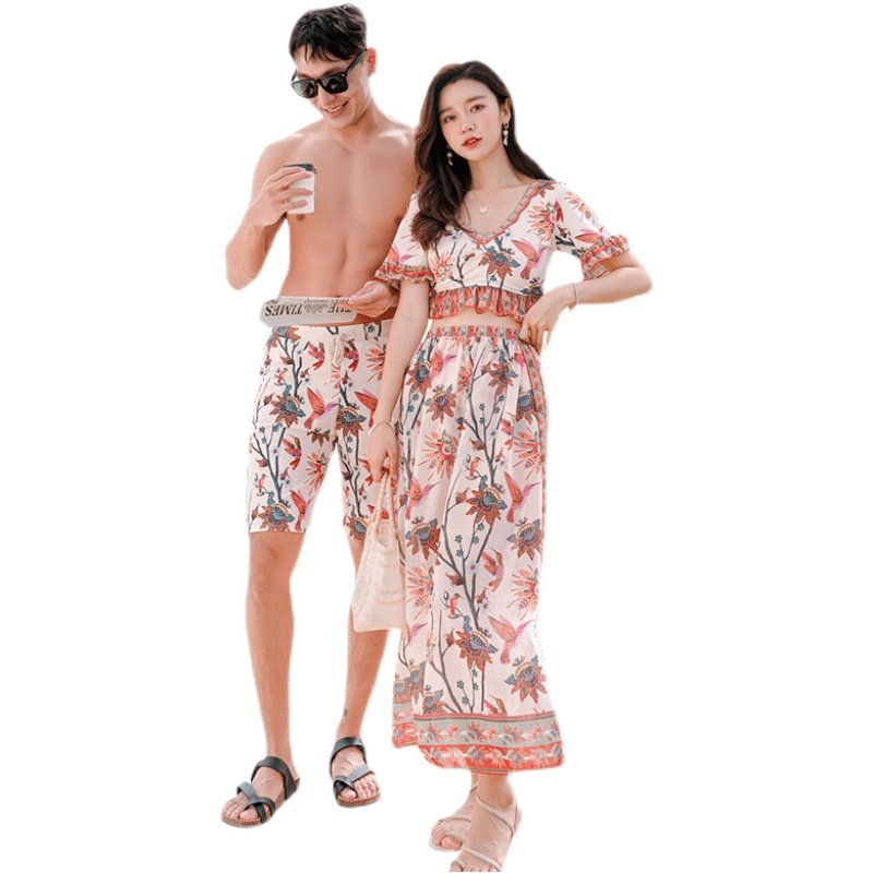 2025新款情侣泳衣女比基尼分体花色长裙小胸显瘦海边度假温泉泳装