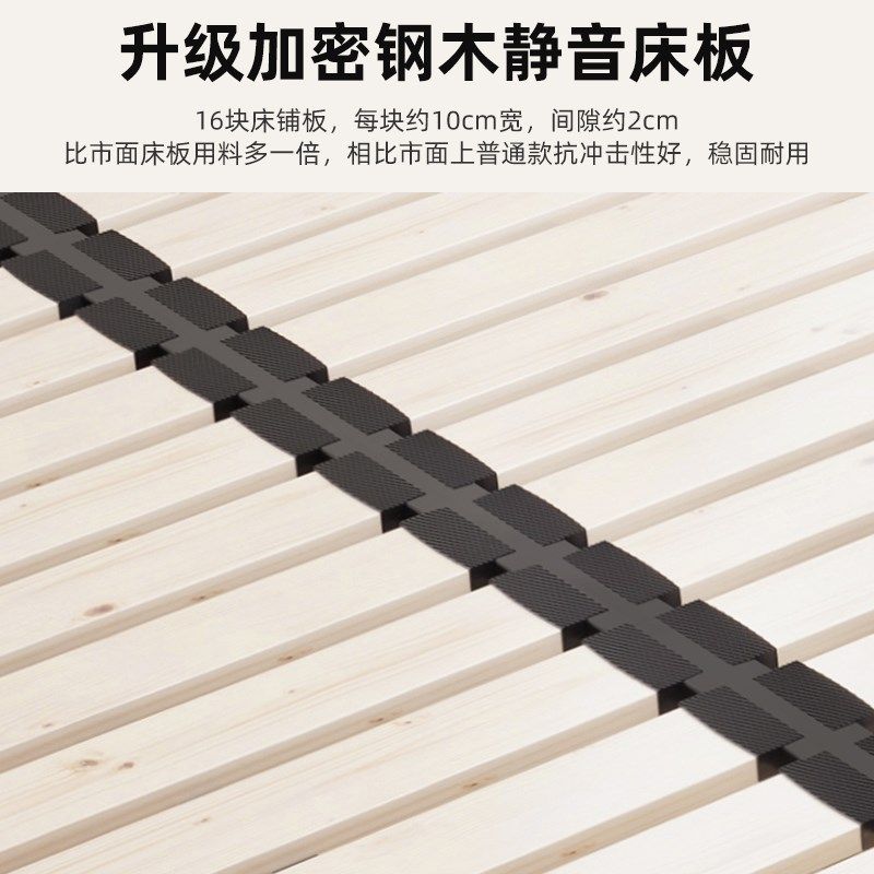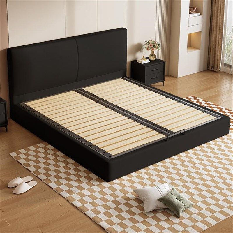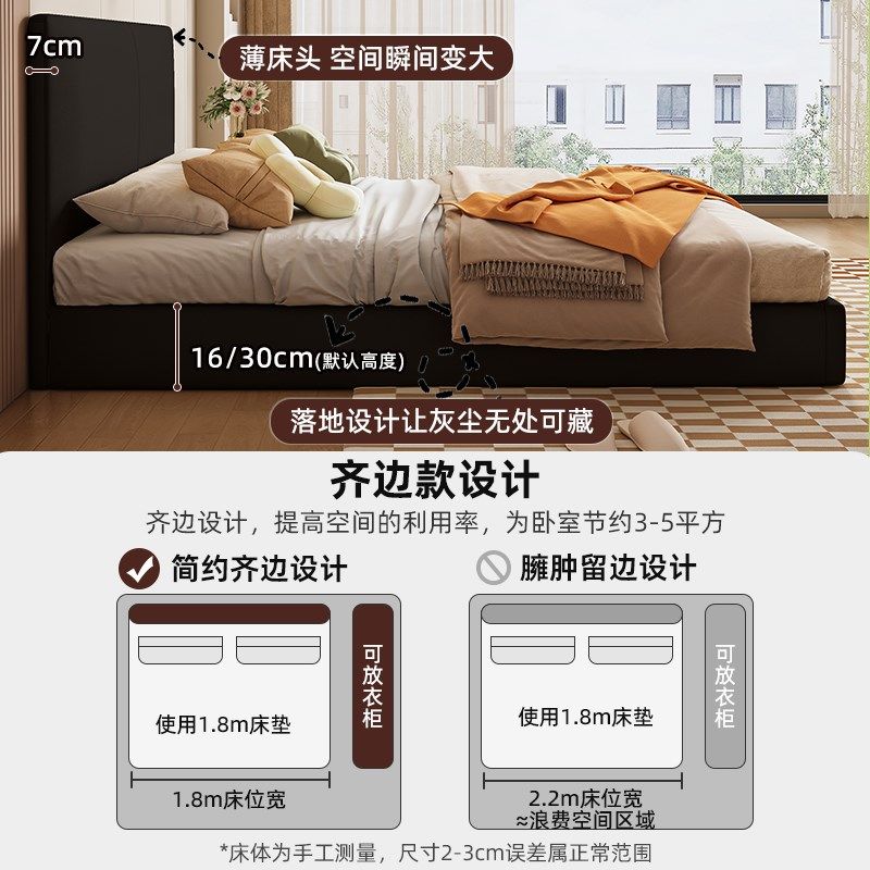 推荐理由:薄床头实木床黑色主卧室皮床钢木全落地齐边床现代简约小户型床架