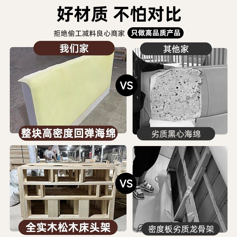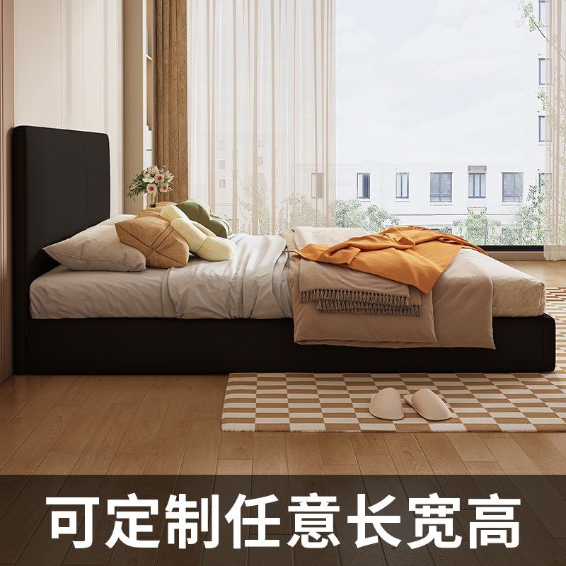 薄床头实木床黑色主卧室皮床钢木全落地齐边床现代简约小户型床架