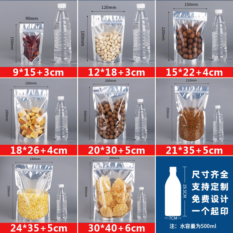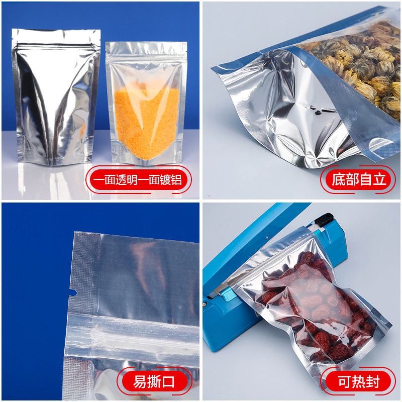 推荐理由:阴阳铝箔袋自立自封袋食品包装袋半透明镀铝阴阳袋铝膜袋100个