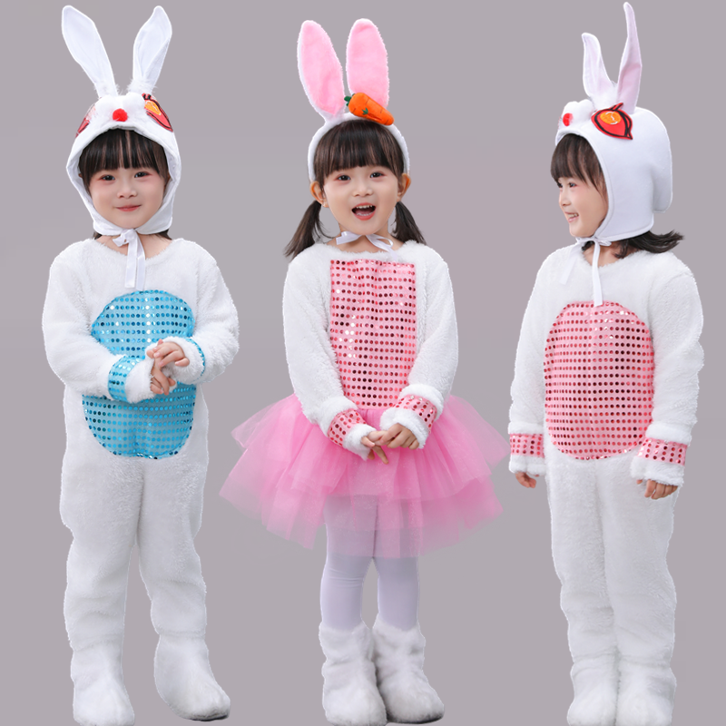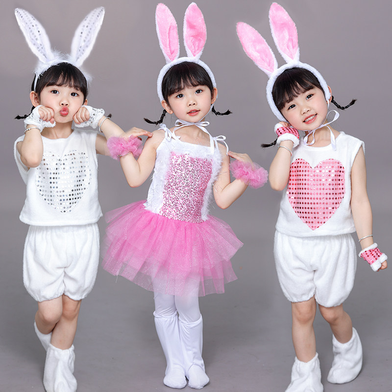 新元旦儿童小兔子演出服小白兔子动物表演服装幼儿园舞台舞蹈纱裙