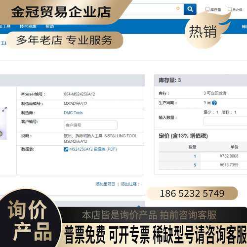 询价:美国进口DMC拔出、拆除和插入工具 MS24256A12