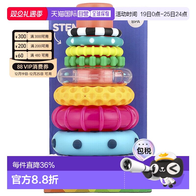 香港直发Sassy儿童堆积积木玩具6个月 3岁多色趣味10件套