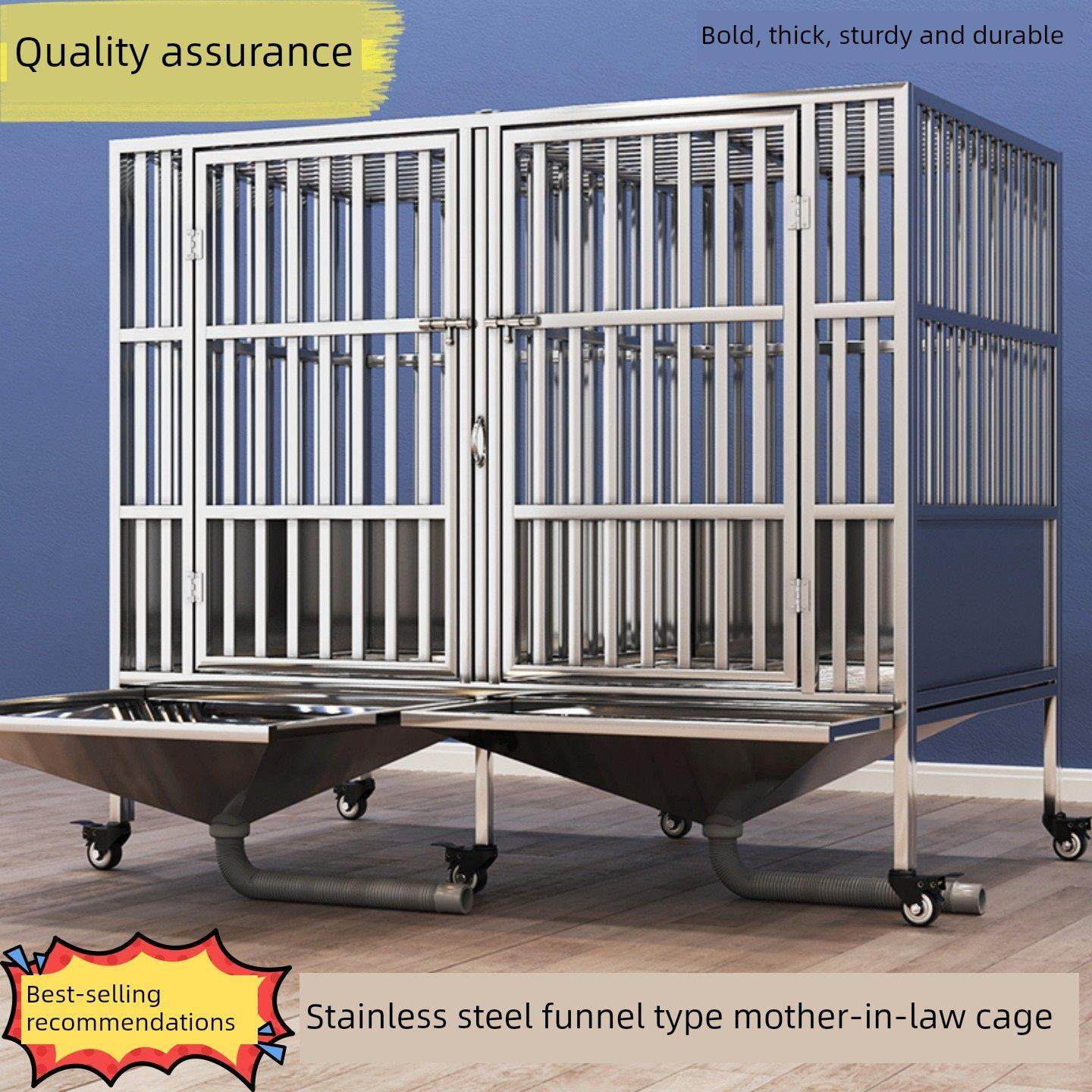 全方管狗笼不锈钢中型狗与厕所漏斗托盘直接排水防臭加计时器