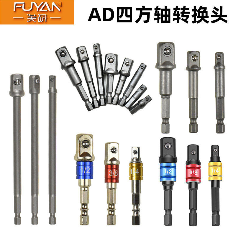 六角柄转四方手电钻螺丝风批转换接头钢珠转接杆套筒连接杆工具