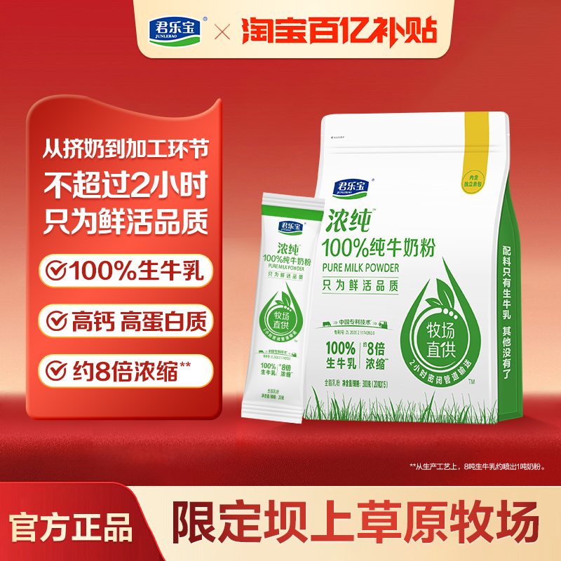 君乐宝浓纯纯牛奶粉全家营养奶粉高钙高蛋白成人学生粉条包便携装
