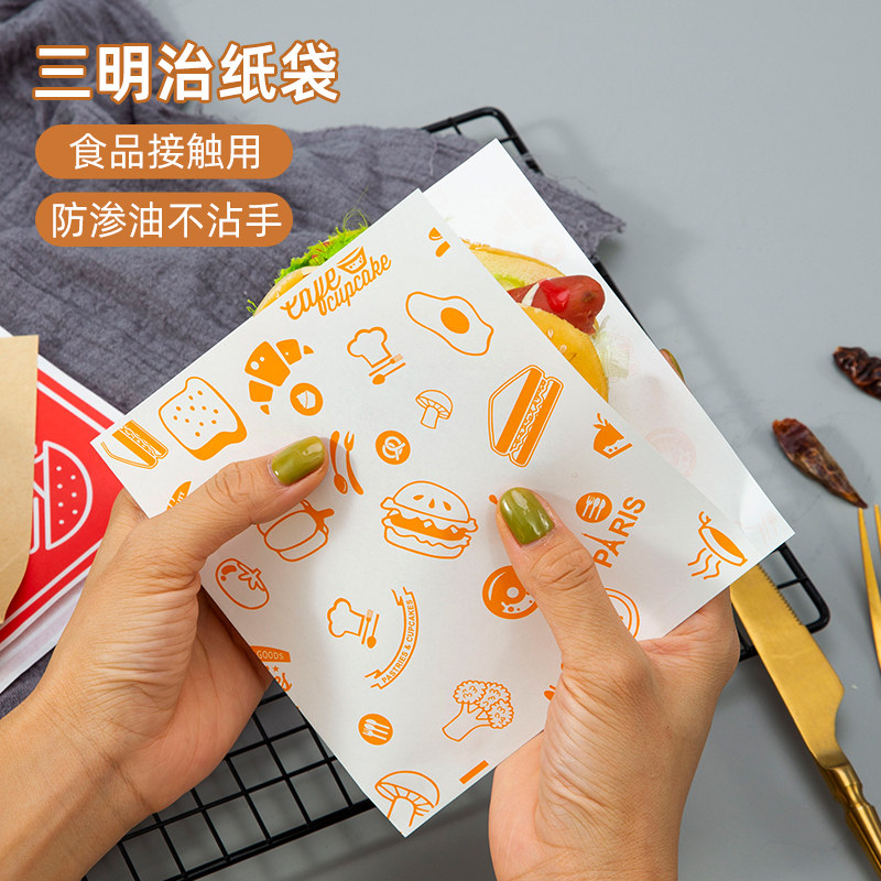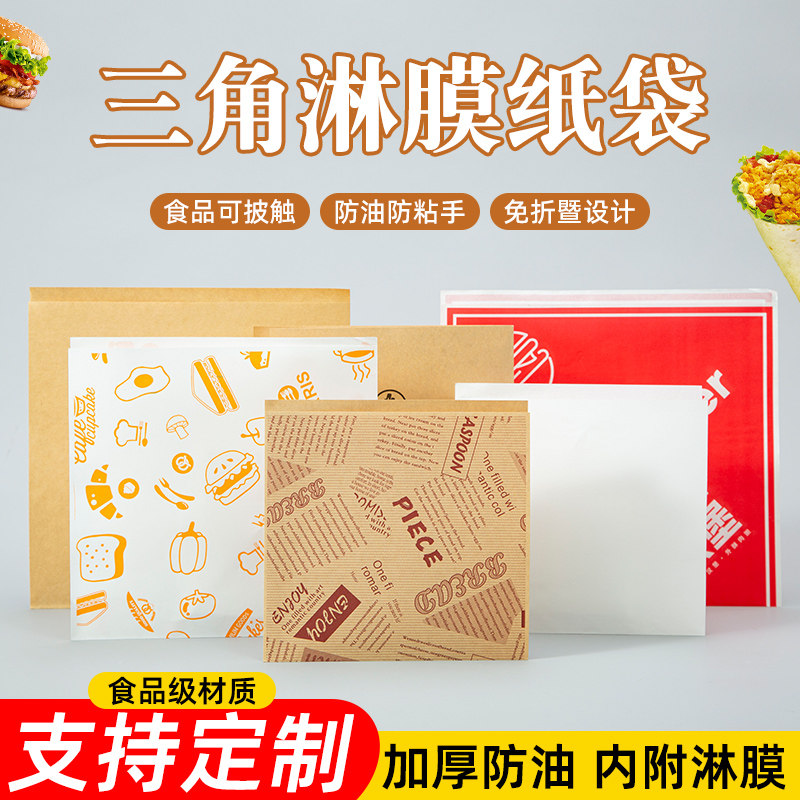 推荐理由:加厚防油三角袋三明治包装纸袋汉堡甜甜圈泡芙手抓煎饼打包袋定制