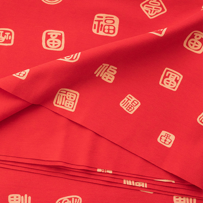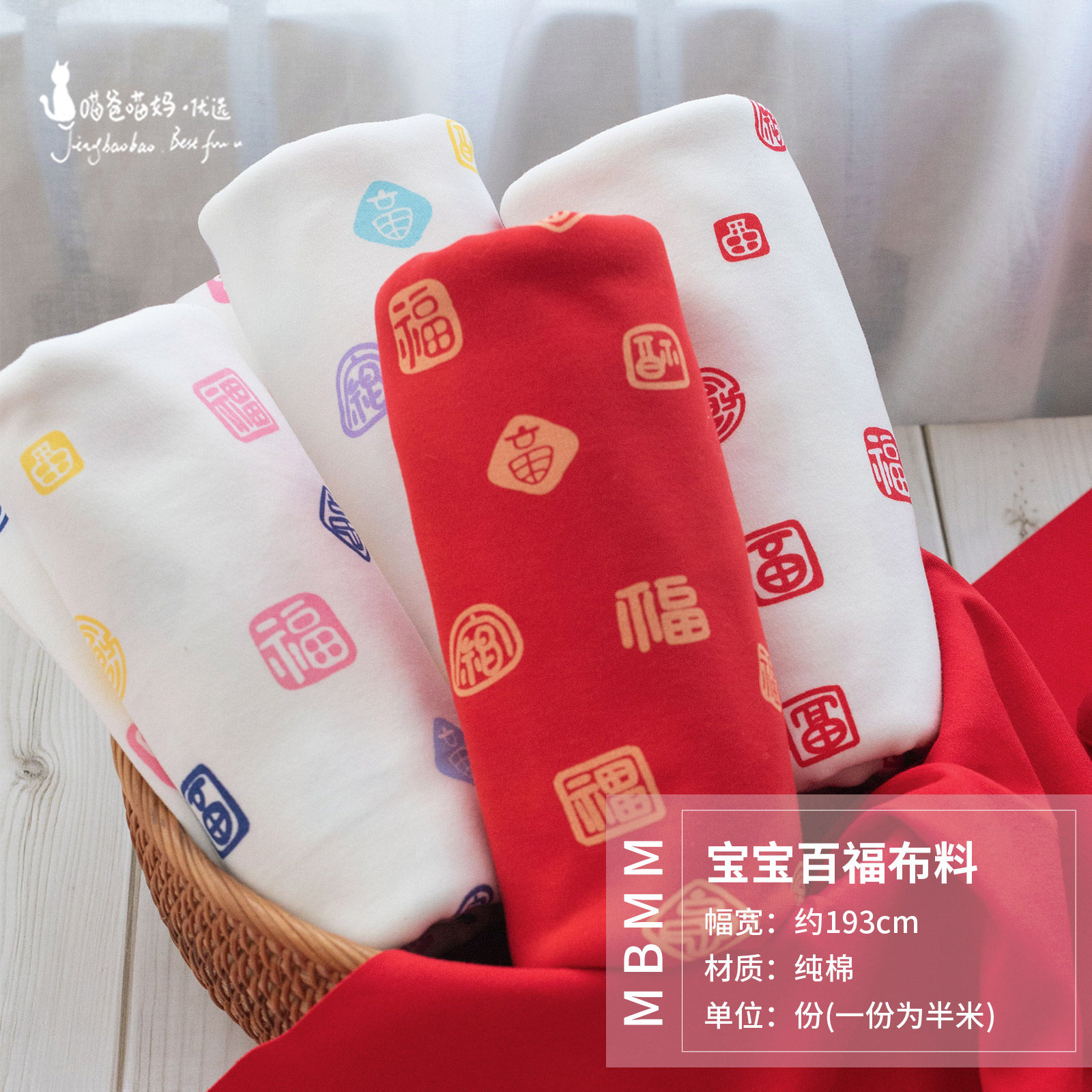 喵爸喵妈红色百福针织纯棉宝宝棉布婴儿红布a类布头衣服福字布料