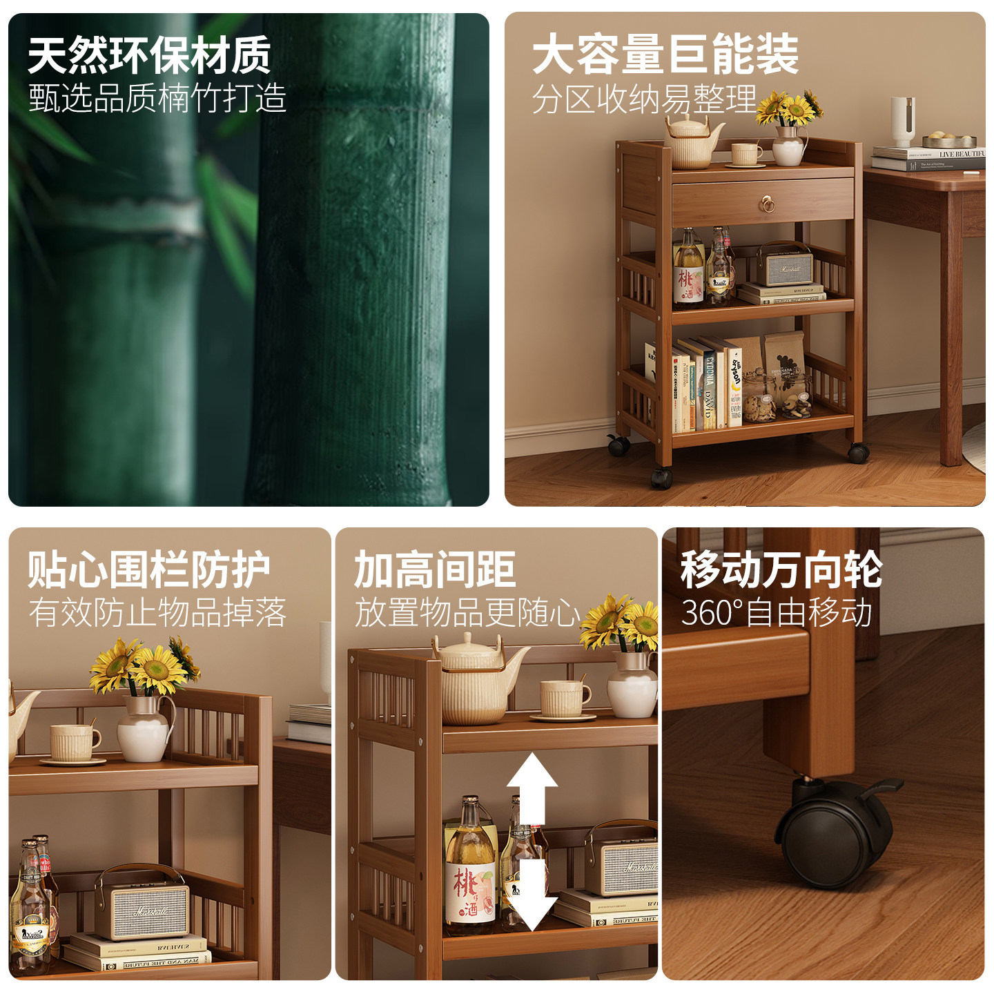 推荐理由:移动小推车茶几置物架边几茶桌边柜麻将桌茶水架零食客厅收纳带轮