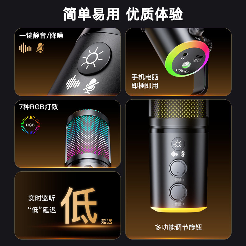 麦克风电脑台式声卡主直播录音专用设备手机游戏降噪电容USB话筒