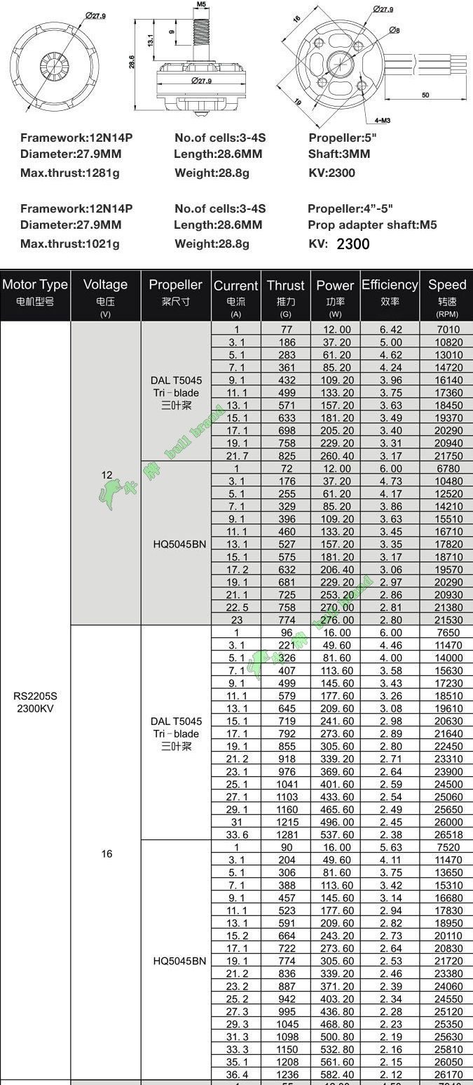 推荐理由:穿越机电机四轴RS2205 2300KV250级5寸四轴多旋翼FPV航模无刷暴力
