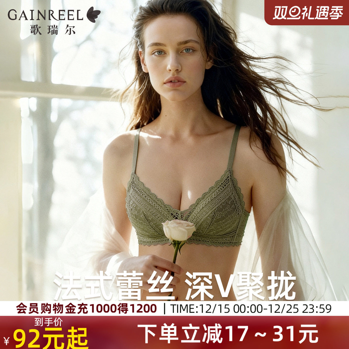歌瑞尔法式蕾丝内衣女小胸聚拢无钢圈性感纯欲三角杯薄款文胸罩