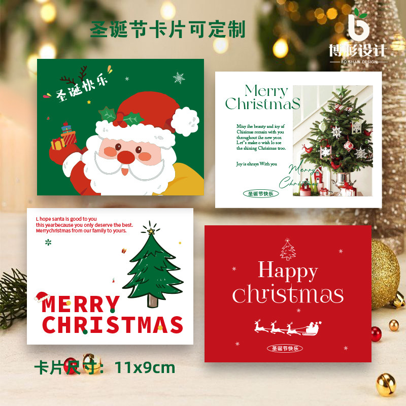 新款圣诞节小卡片贺卡英文花店花束伴手礼装饰吊牌手写祝福语定制