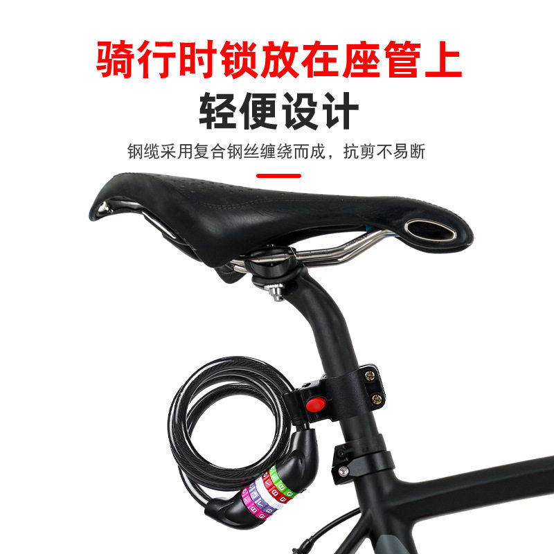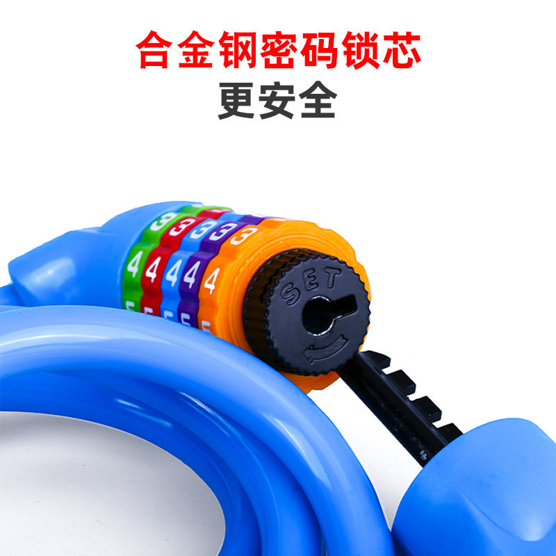 推荐理由:自行车锁电动车五位密码锁山地单车条形钢丝圈锁防盗骑行装备彩色