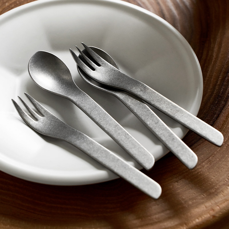 米立风物304不锈钢叉子家用复古甜品蛋糕勺子水果沙拉小叉子套装