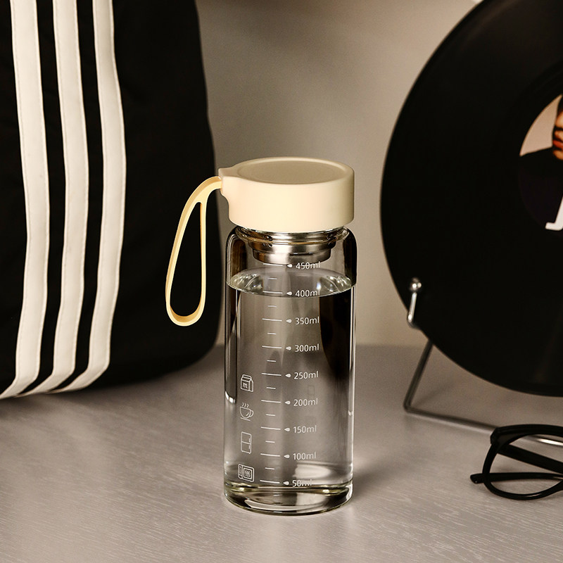 玻璃杯女高颜值水杯便携牛奶豆浆咖啡果汁早餐随手刻度杯子耐高温