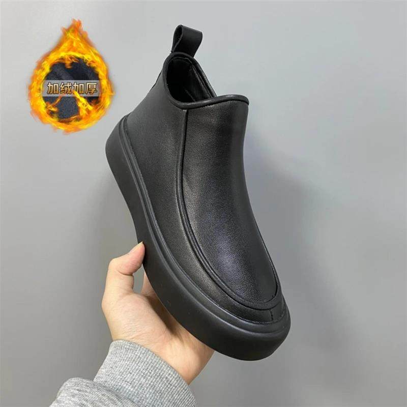 威沙仑男鞋秋冬季牛皮A休闲新款加绒时尚男士牛皮侧拉链休闲男皮