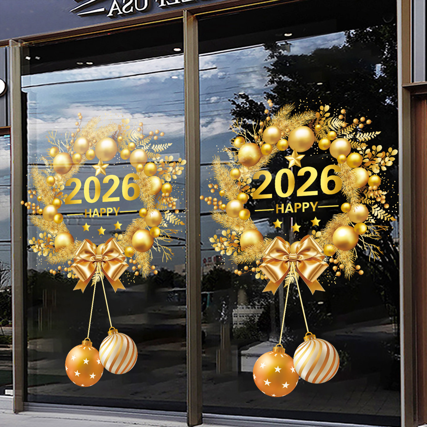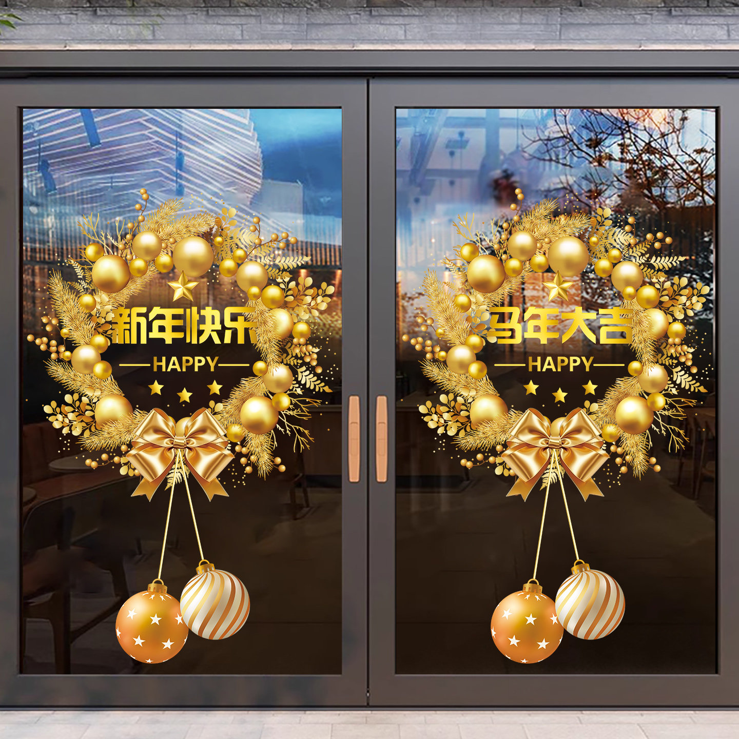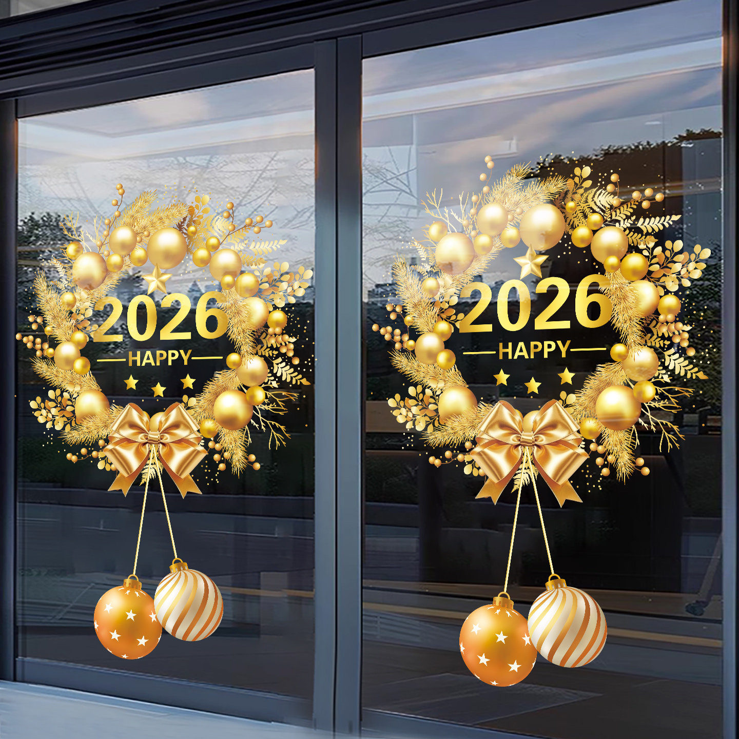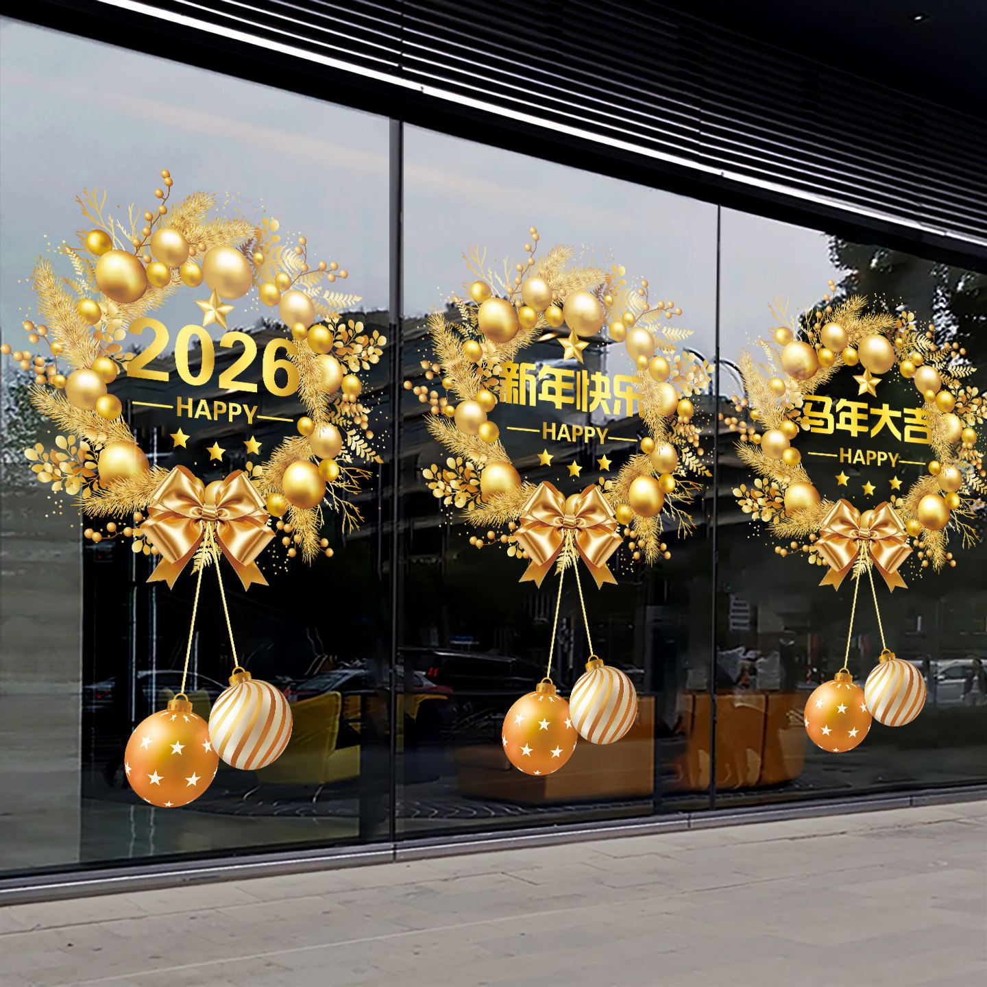 2026圣诞节装饰窗花元旦新年玻璃门贴纸商场店铺过年橱窗静电贴画