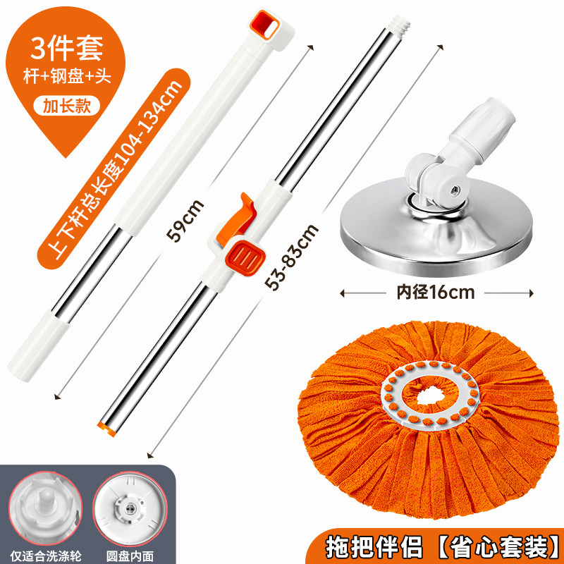 洁仕宝旋转拖把头拖布替换头加厚墩布头旋转拖把配件通用拖把杆
