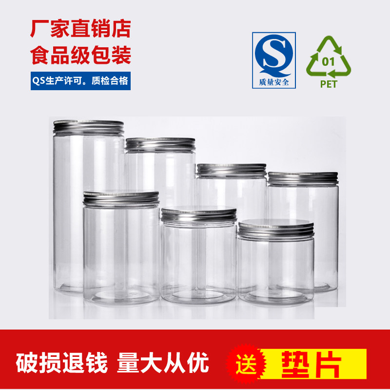 推荐理由:透明pet密封罐塑料瓶子食品级包装桶圆形蜂蜜饼干储物罐