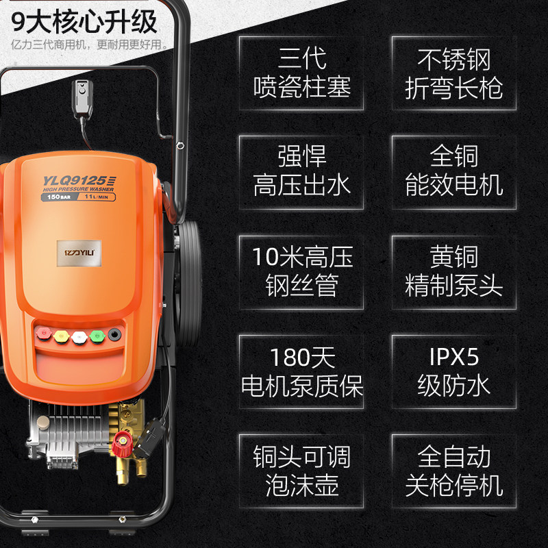 亿力商用高压清洗机洗车机大功率220v汽美洗地机水泵洗车店水枪抢