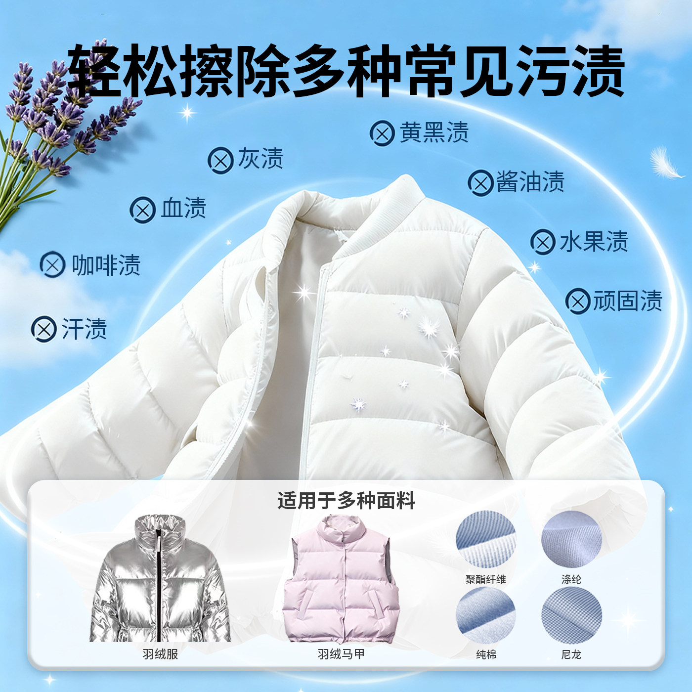 羽绒服免洗清洁湿巾强力去污擦去油去污渍衣物干洗湿巾清洗剂家用