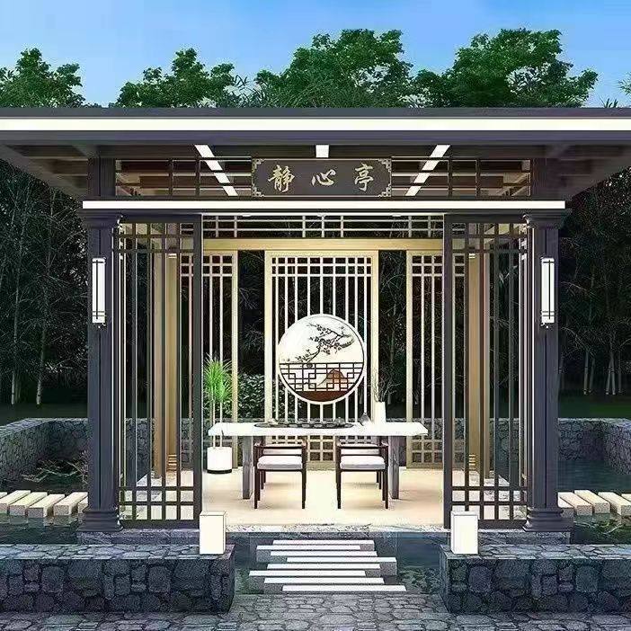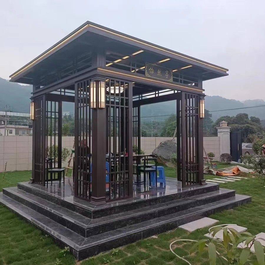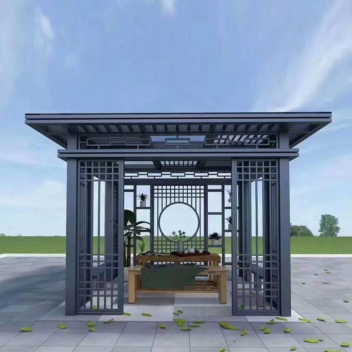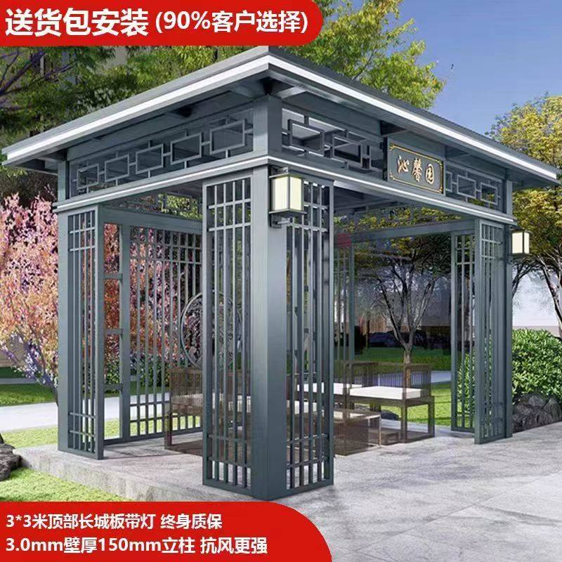 中式铝合金凉亭户外庭院别墅密封式亭子电动花园遮阳四角阳光房