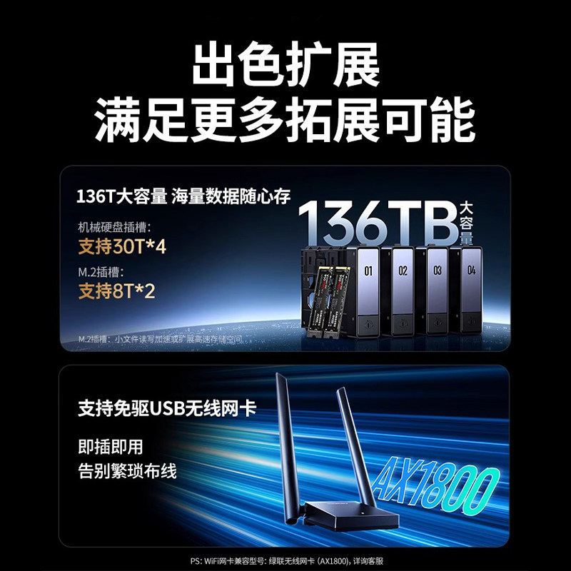 【顺丰包邮】绿联私有云DXP4800四盘位NAS家用家庭网络存储器主机服务器个人云硬盘AI相册文件同步N100芯片