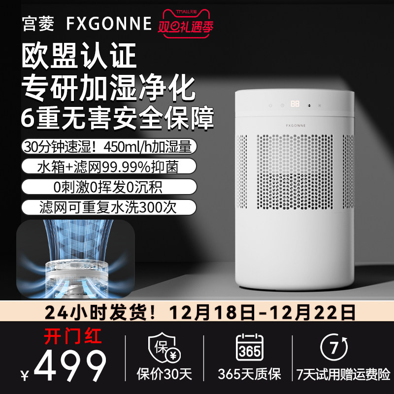 推荐理由:宫菱无雾加湿器家用卧室孕妇婴儿轻音抗菌智能调湿空气蒸发一体