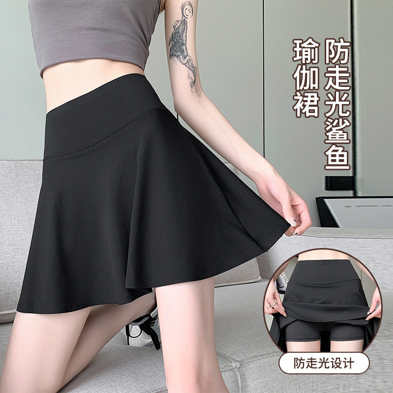 运动短裙鲨鱼女假两件防走光瑜伽裙跑步健身网球羽毛球百褶外穿