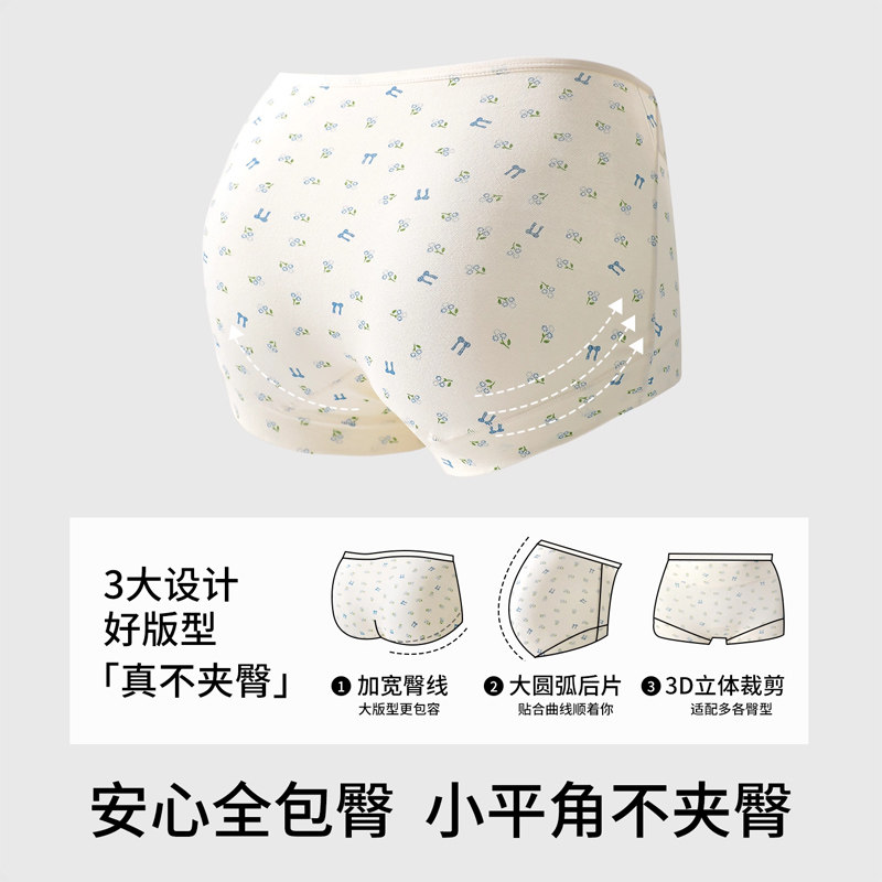 推荐理由:内裤舒适透气加长裆女款纯棉加长裆高腰四角裤头大码女士平角短裤