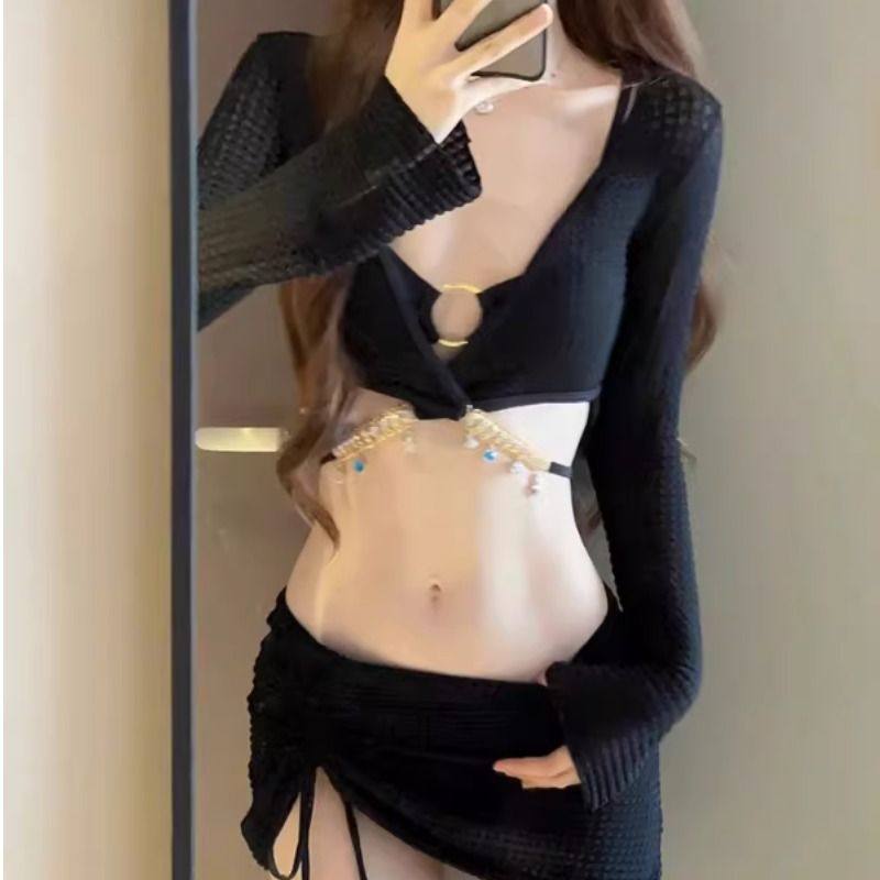 推荐理由:泳衣女比基尼女四件套分体2024新款时尚镂空保守海边泡温泉钢托