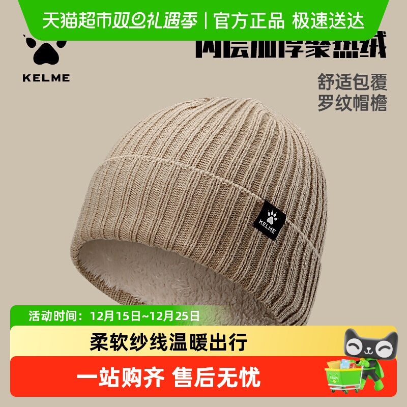 卡尔美户外针织运动帽时尚保暖运动帽秋冬季御寒大头围防寒帽