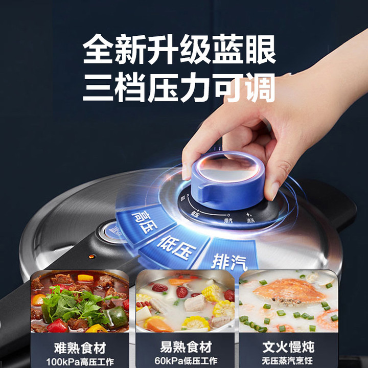 苏泊尔不锈钢调压快排气高压锅家用燃气电磁炉通用蓝眼压力锅防爆