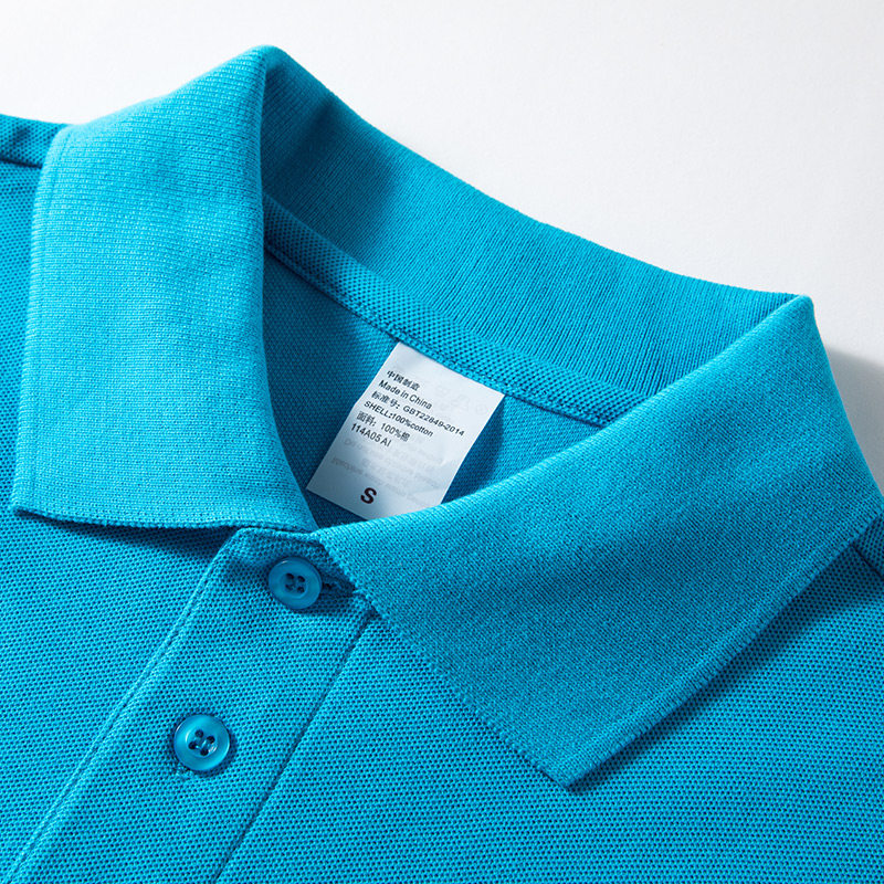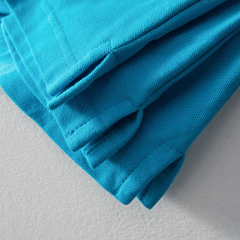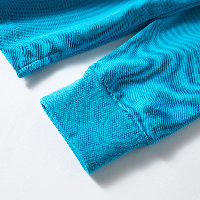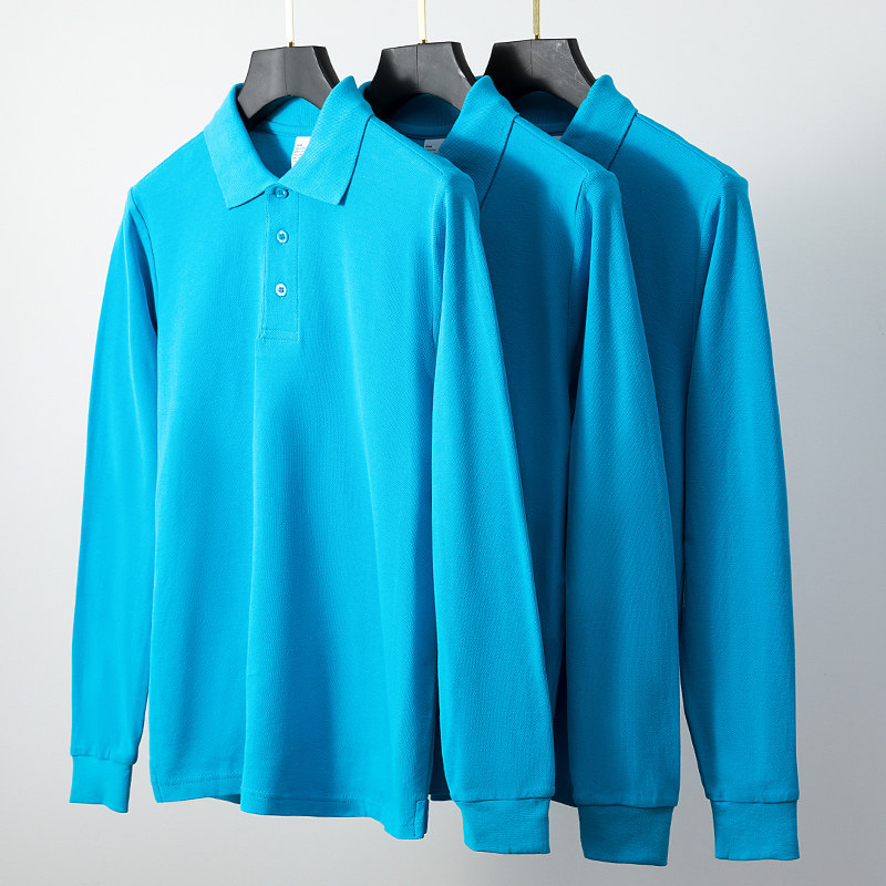 纯棉翻领T恤男长袖POLO衫珠地全棉湖蓝色商务休闲有领t定制工作服