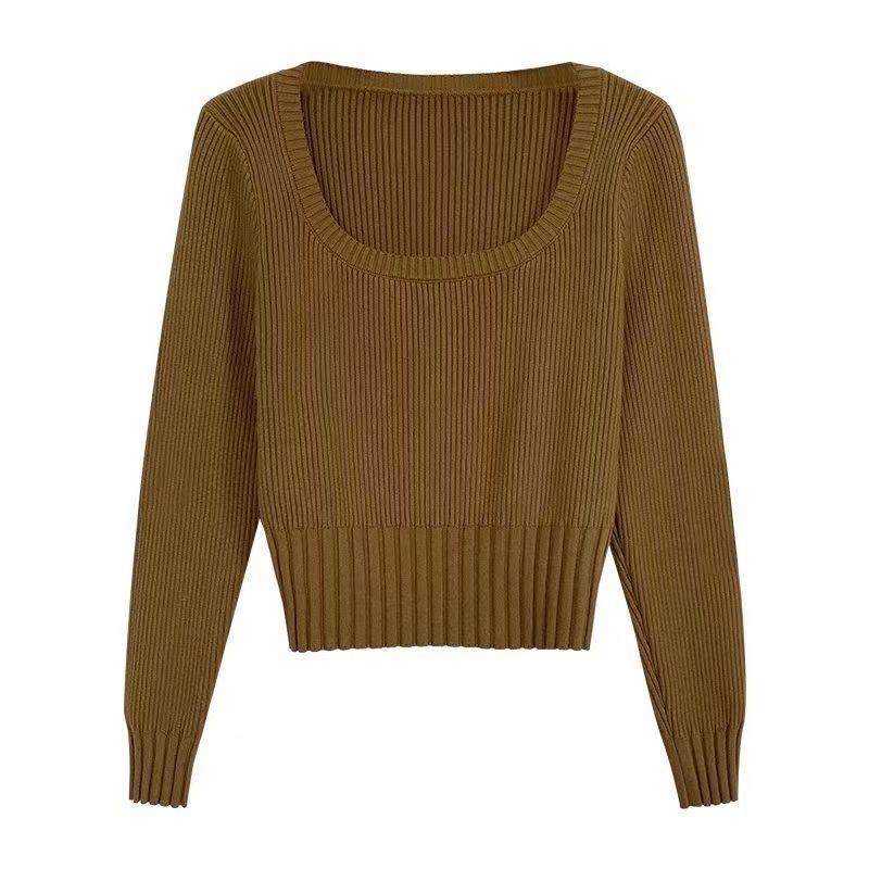 推荐理由:打底衫女秋冬2024新款洋气内搭方领针织衫短款修身毛衣设计感上衣