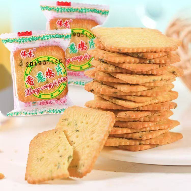 伟龙香葱鸡片薄脆饼干薄饼牛奶巧克力味葱香散装零食休闲小吃食品