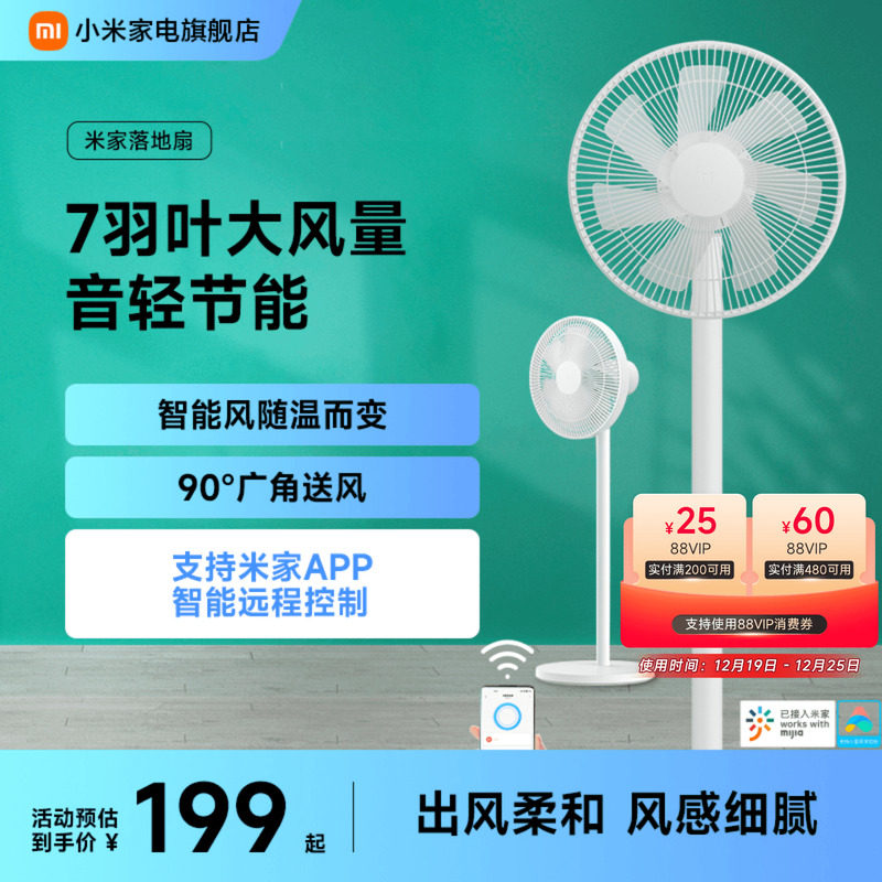 米家落地扇家用轻音大风量节能省电遥控立式宿舍卧室电风扇