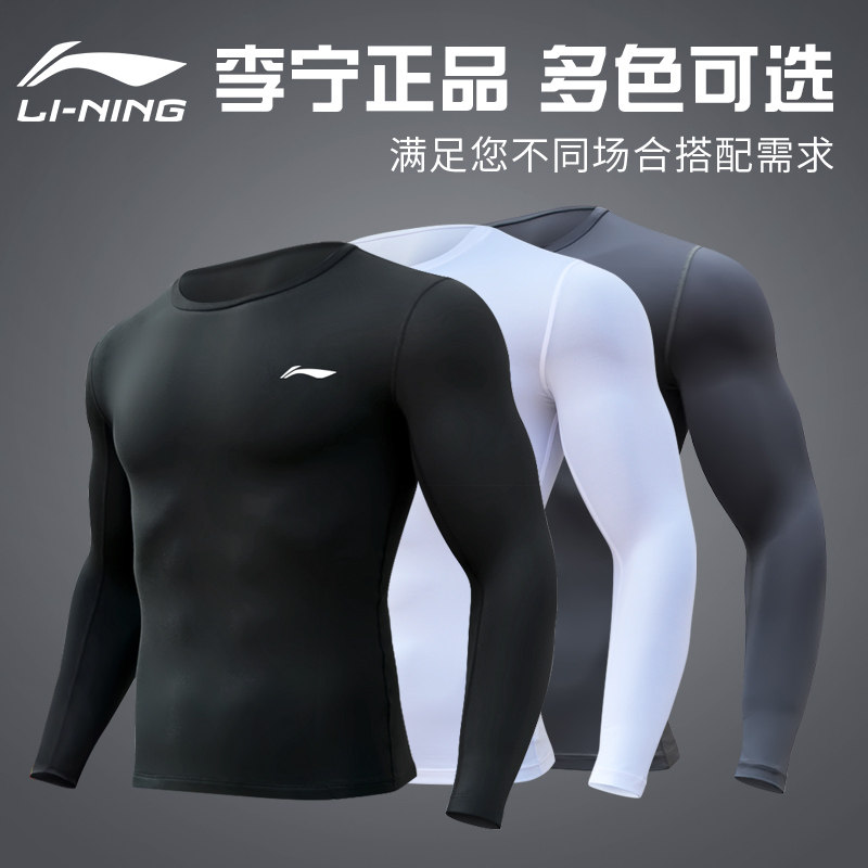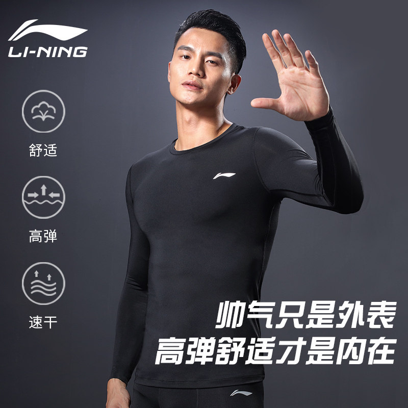 李宁紧身衣速干健身衣男士运动套装加绒长袖篮球跑步秋冬训练打底