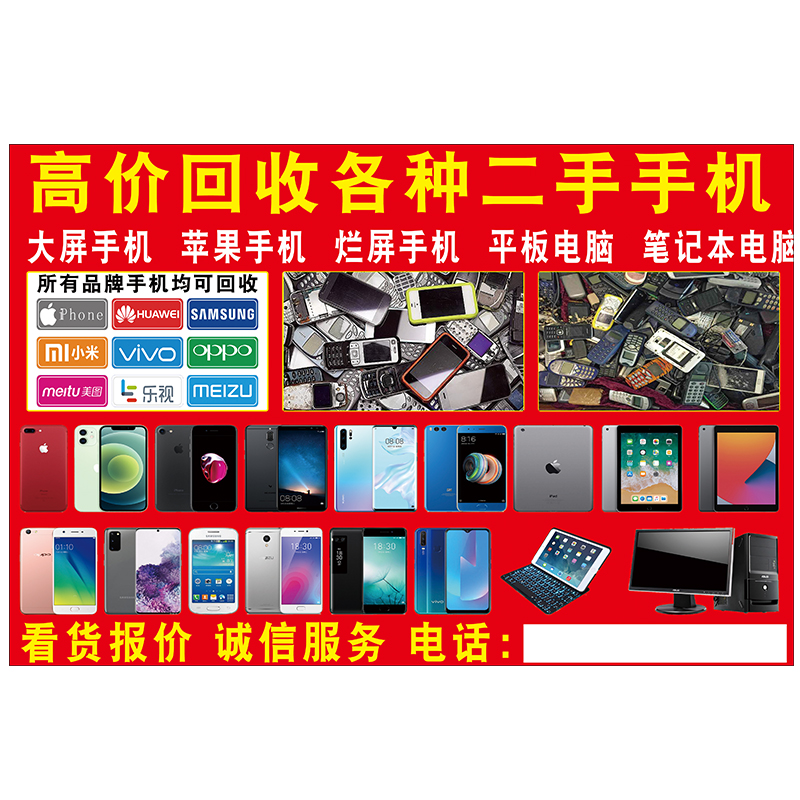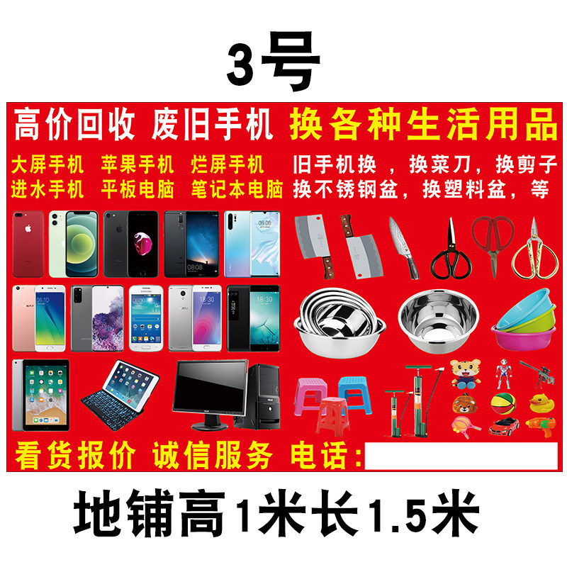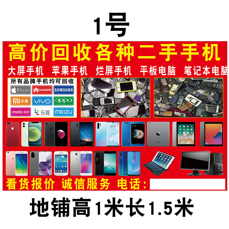 推荐理由:旧手机广告布旧电脑报废手机广告牌三角牌喷绘布三折牌地摊布摆摊