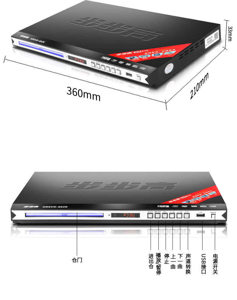 步步高DVD影碟高清EVD机VCD高清HDMI全格式dvdDTS解码碟机播放器