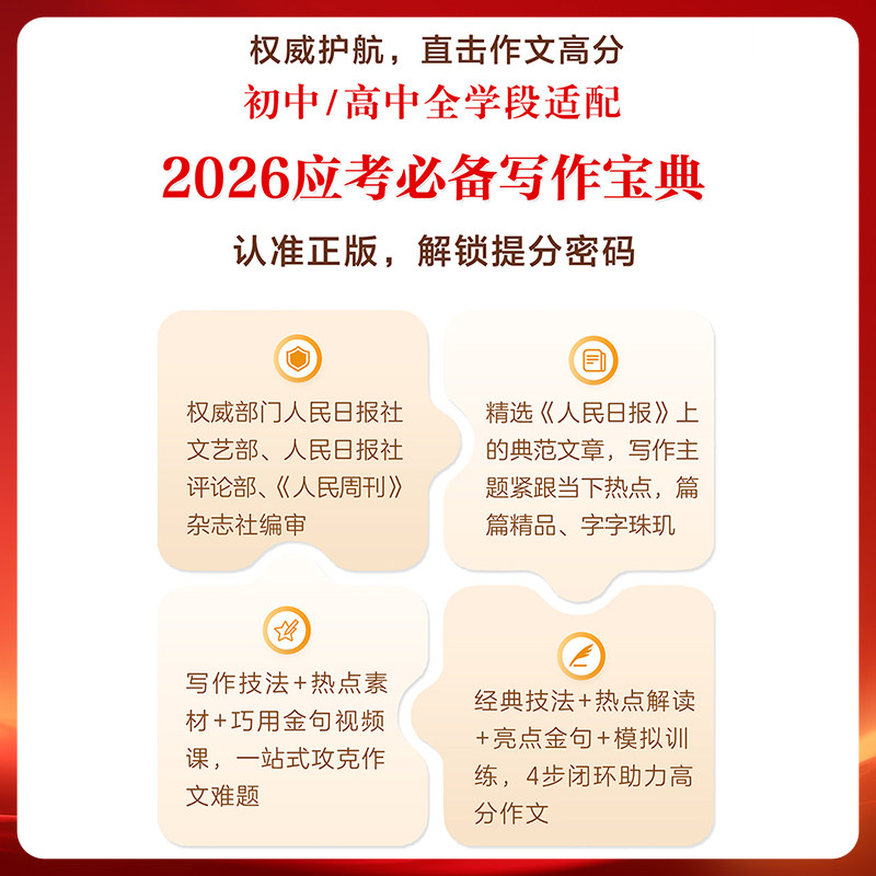 推荐理由:2026人民日报教你写好文章中考高考满分作文热点与素材技法指导初高中版金句与使用作文素材每日热点时评摘抄带你读时政写作文日報