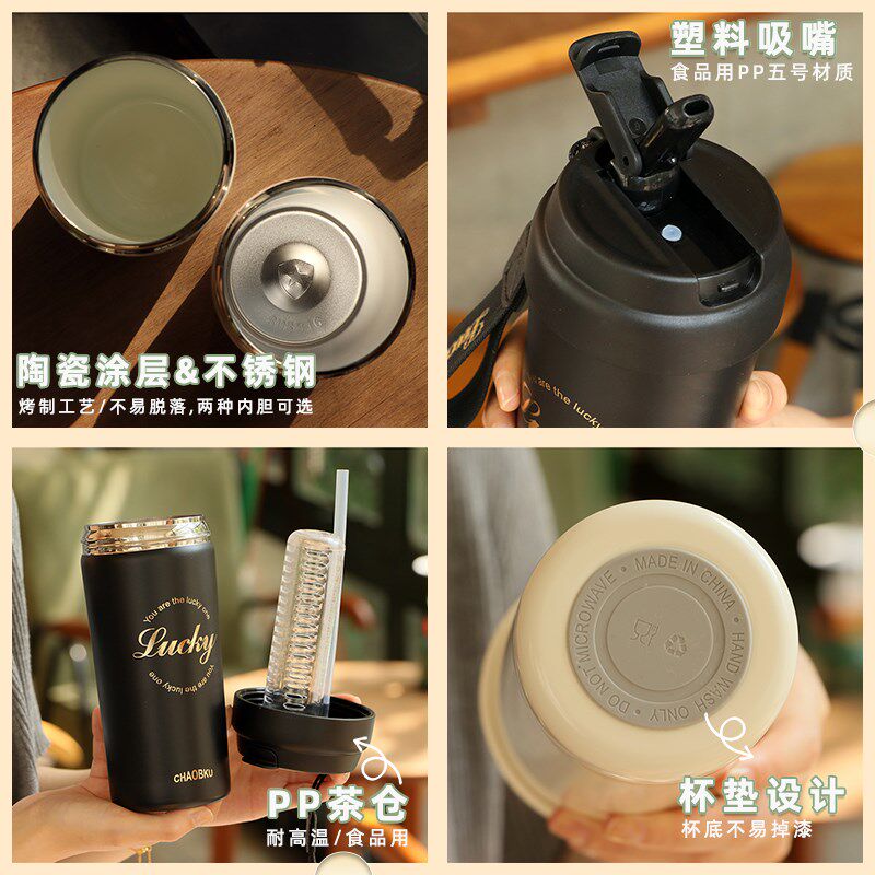 茶水分离保温杯咖啡杯陶瓷内胆女生高颜值水杯男新款2U024吸管杯