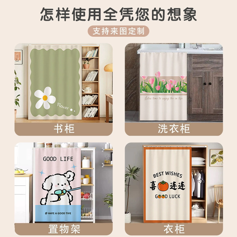 推荐理由:柜子杂物遮挡帘橱柜门帘免打孔拉帘置物架衣柜防尘布帘鞋架遮丑帘
