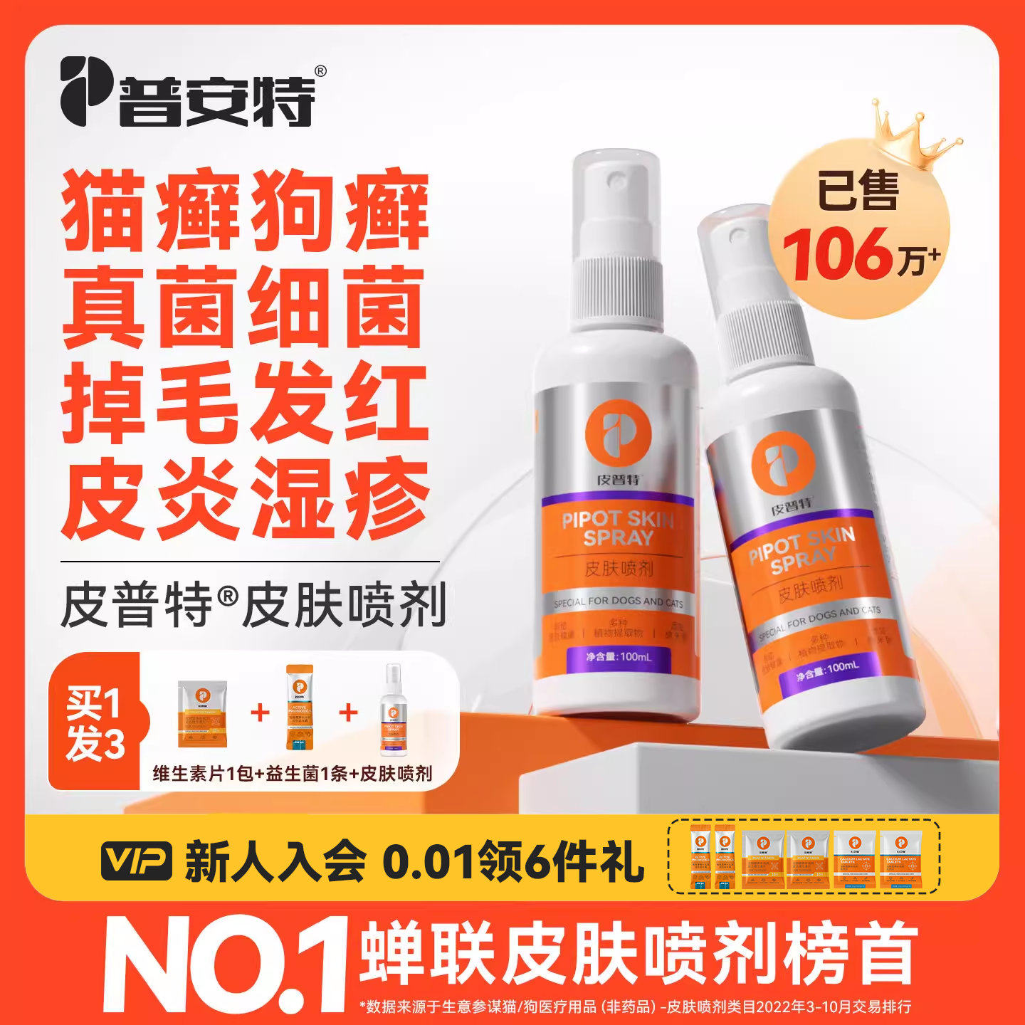 普安特猫藓外用猫癣专用狗藓狗皮肤病真菌瘙痒宠物喷雾皮普特喷剂