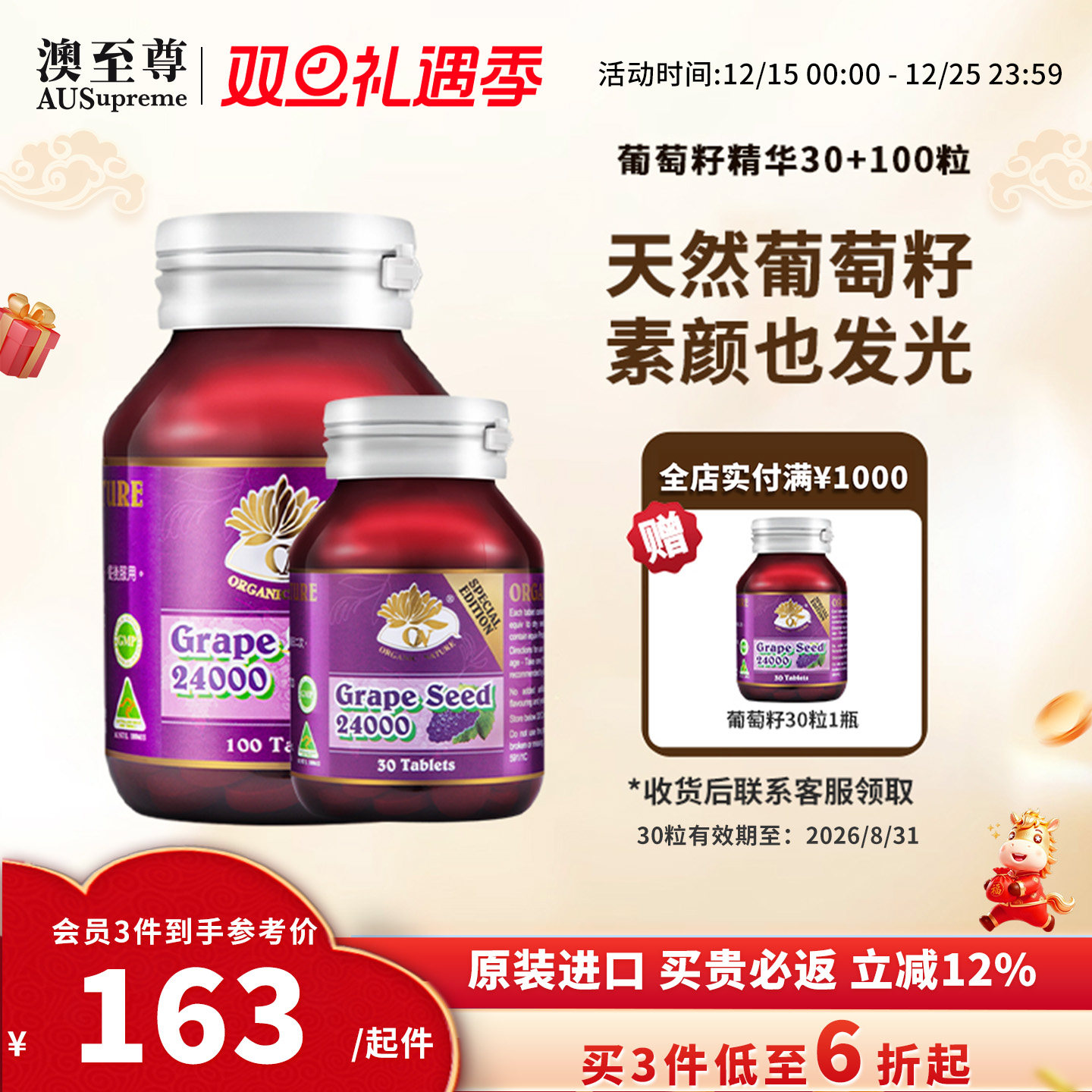 澳至尊葡萄籽精华片原花青素opc内调全身素颜肌肤澳洲进口临期