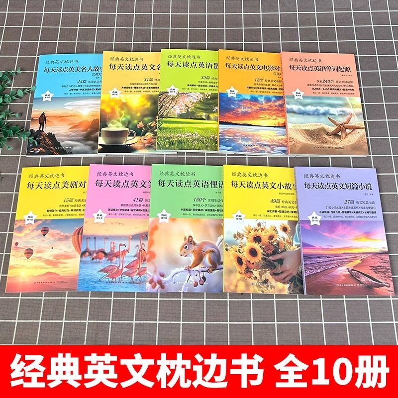 认准正版】全10册经典英文枕边书正版每天读点英语单词起源电影对白英语散文英文名著语阅读书籍中小学生英语故事大全中英双语读物