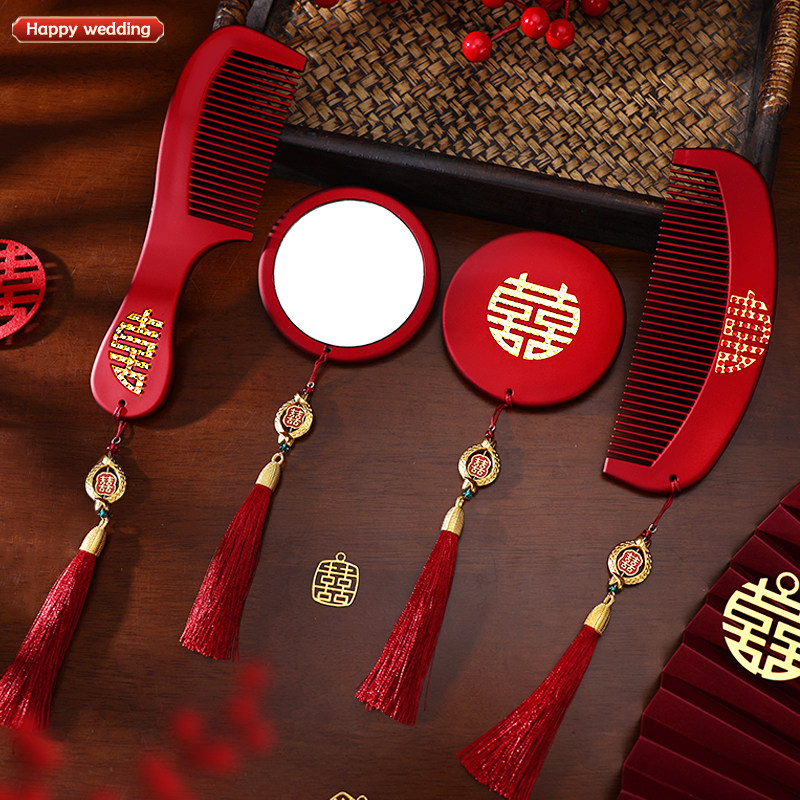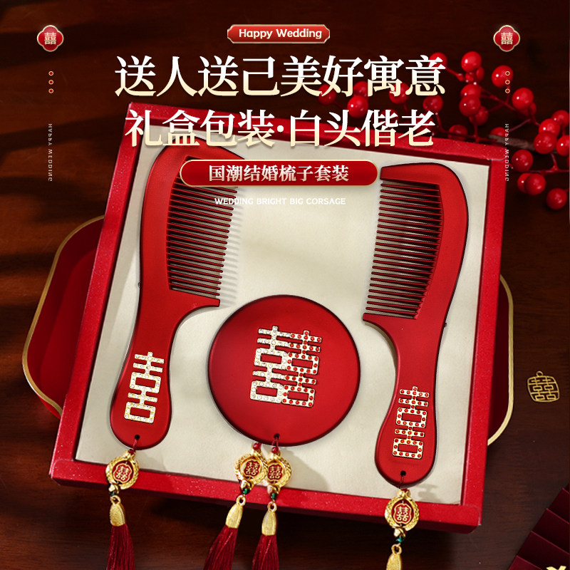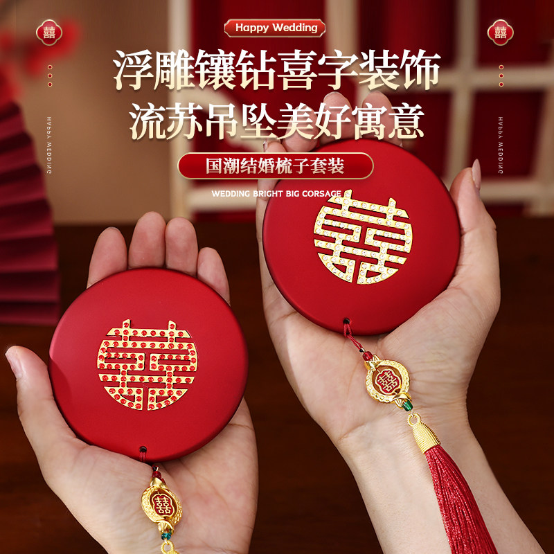 镜子梳子结婚陪嫁一对套装红色礼盒婚礼新婚新娘礼物高档婚庆用品